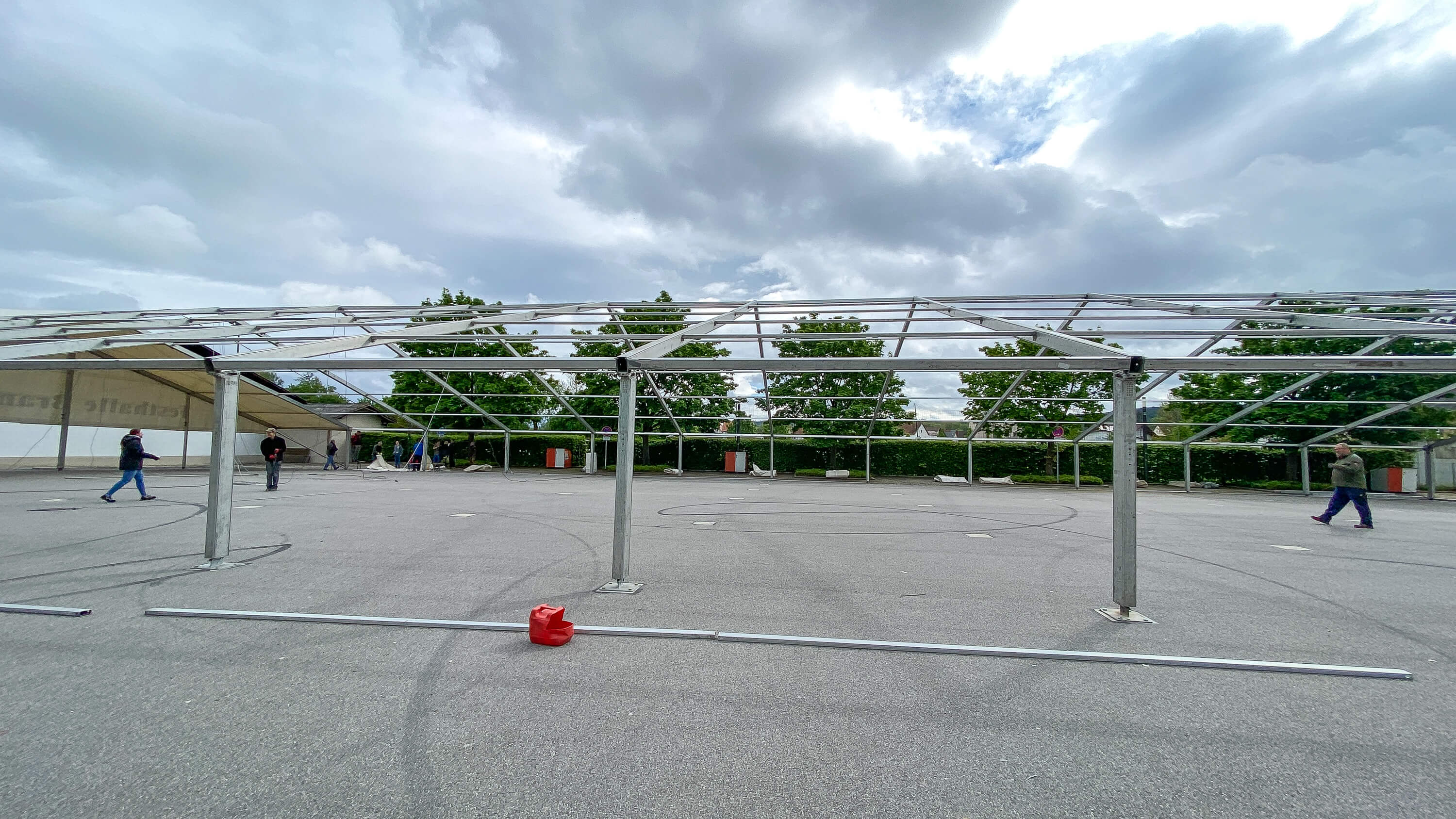 Bevor die Aussteller am Montag, den 15.05. anrollen, muss zuerst das Messezelt aufgebaut werden.