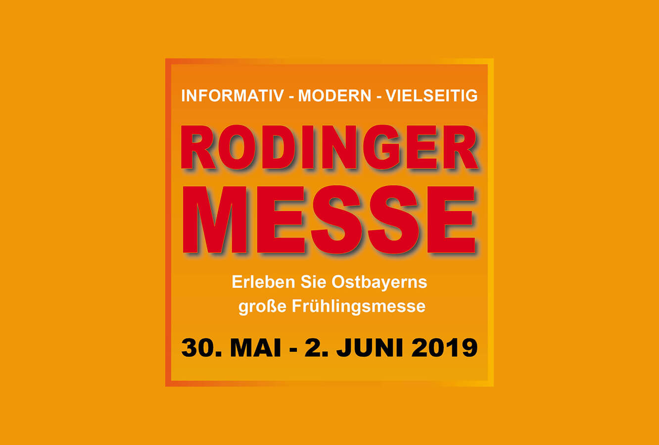 Die RODINGER MESSE, vom 30. Mai bis 2. Juni 2019, ist Ostbayerns größte Frühjahrsmesse und eine der ältesten Gewerbeschauen im ostbayerischen Raum. Mehr als 150 Aussteller, Behörden und Institutionen präsentieren sich auf der Messe mit einem breiten Spektrum neuer Produkte, Dienstleistungen, Informationen, Tipps und Trends aus den Bereichen Automobil, Haushalt, Handwerk, Industrie, Kulinarik, Kunst, Sozialwesen, Bau- und Landwirtschaft. Zur Eröff nung der 23. Rodinger Messe am 30. Mai 2019 beehrt uns der Bayerische Ministerpräsident Herr Markus Söder. Zudem dürfen wir das Team von SAT.1 Bayern begrüßen. Beim Regionalmagazin 17.30 SAT.1 BAYERN wird darüber berichtet werden. An den vier Messetagen ist das Infomobil des Deutschen Bundestages vor Ort und gibt einen Einblick in die Arbeitsweisen im Parlament. Am Samstag und Sonntag präsentieren die Athleten von STIHL TIMBERSPORTS ®, der Königsklasse im Sportholzfällen, ihr Können an Axt und Säge. Sie sorgen für packende Action und mitreißenden Spitzensport.